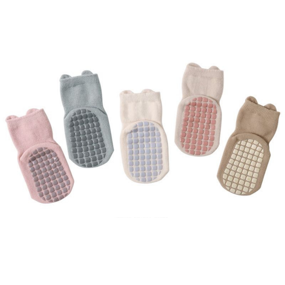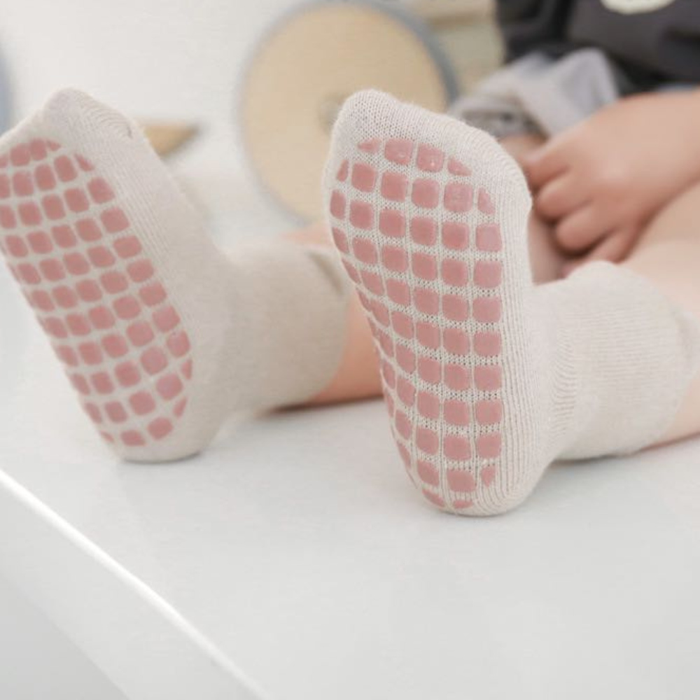 These long cute socks can be worn with or without shoes, though this style is so cute you may not want to hide them. The soles of these tiny socks are covered with grippers to help your baby get a grip when walking on hardwood, marble, or tile floors and prevent any toppling over, which could result in boo boos.